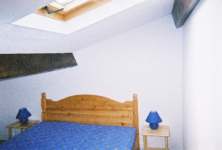 Une chambre en mezzanine avec un lit pour 2 personnes.
